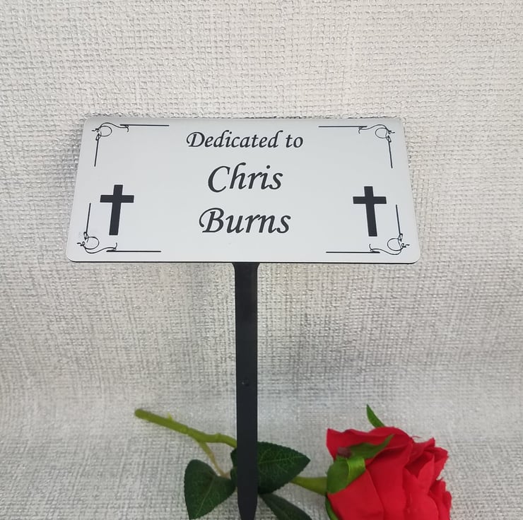 The markers can be completely personalised with any wording onto Brass Effect Outdoor grade engravers acrylic, making them last indefinately.