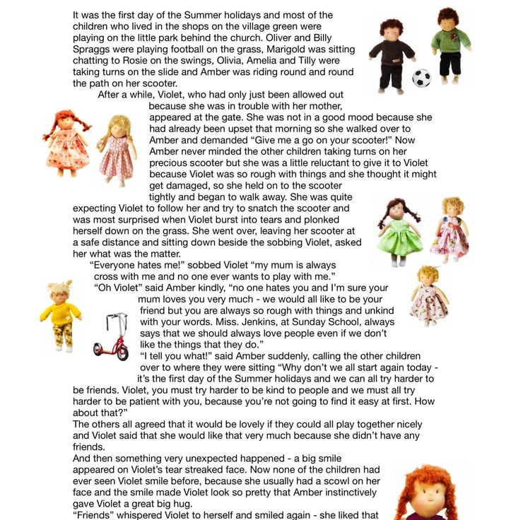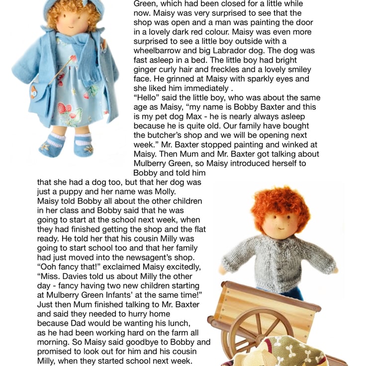 There are other children in Maisy’s class at school - Violet, Billy with his pet rabbit, Amber, Tilly, Rosie and her kittens, Amelia, Ruby, Marigold, Bobby with Max the dog, and the twins Oliver and Olivia, who have a puppy called Oscar. The dolls are all 28cm tall and baby Daisy is 16cm. Maisy and Mo love nothing more than having adventures with their friends. You can read about their adventures on my Facebook and Instagram pages - Maisy Muffin Rag Dolls and on my Mulberry Green Pinterest boards.