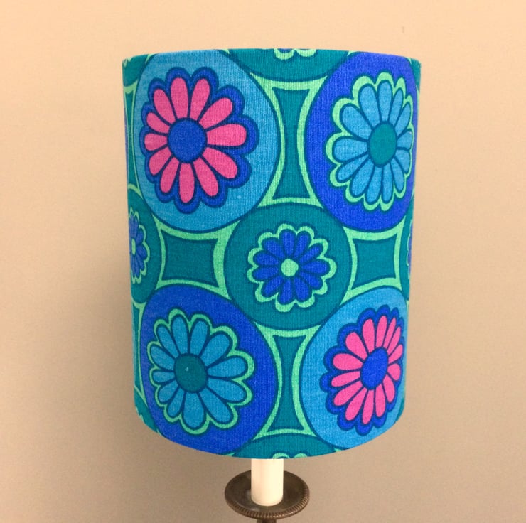 Dramatic Daisy 60s 70s Rainleigh Moygashel Blue Green Magenta vintage fabric Lampshade - lovely fabric for a lampshade in a modern, vintage or retro home.
