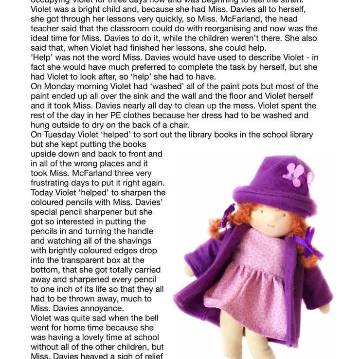 There are other children in Maisy’s class at school - Violet, Billy with his pet rabbit, Amber, Tilly, Rosie and her kittens, Amelia, Ruby, Marigold, Bobby with Max the dog, and the twins Oliver and Olivia, who have a puppy called Oscar. The dolls are all 26cm tall and baby Daisy is 16cm. Maisy and Mo love nothing more than having adventures with their friends. You can read about their adventures on my Facebook and Instagram pages - Maisy Muffin Rag Dolls and on my Mulberry Green Pinterest boards.