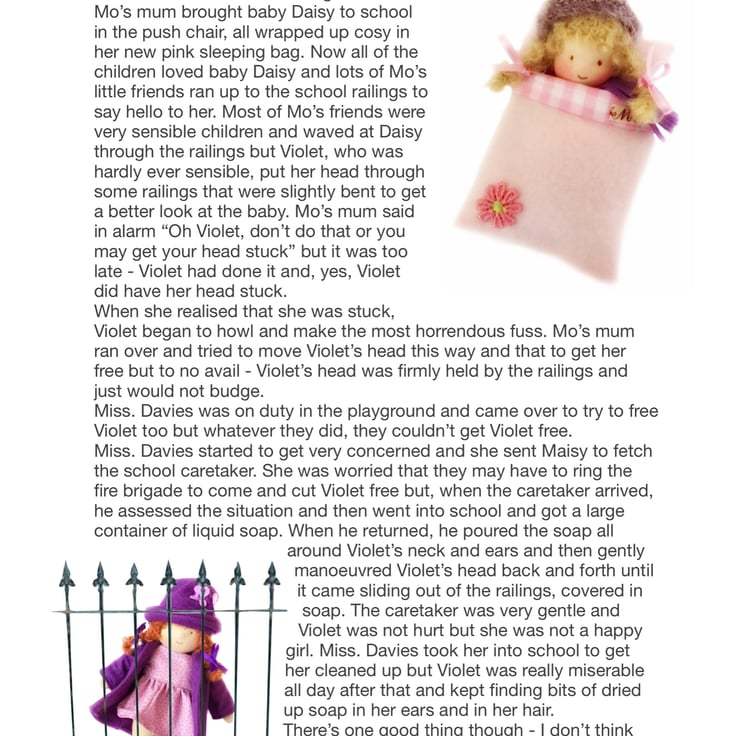 There are other children in Maisy’s class at school - Violet, Billy with his pet rabbit, Amber, Tilly, Rosie and her kittens, Amelia, Ruby, Marigold, Bobby with Max the dog, and the twins Oliver and Olivia, who have a puppy called Oscar. The dolls are all 28cm tall and baby Daisy is 16cm. Maisy and Mo love nothing more than having adventures with their friends. You can read about their adventures on my Facebook and Instagram pages - Maisy Muffin Rag Dolls and on my Mulberry Green Pinterest boards.