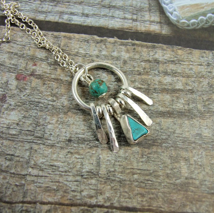 Turquoise BoHo Pendant in Sterling Silver with Turquoise. One of a kind artisan neckalec