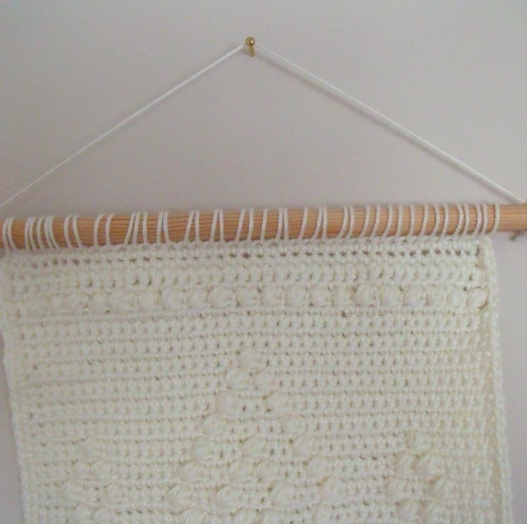 I wanted to make a simple clean looking wall hanging and since I cant do macramé I thought this crocheted piece would look just as nice.