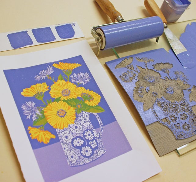 Making art through the medium of lino is one where surprises are a daily occurrence. Every time an image is hand pressed the anticipation of the reveal when pulling back the paper can make for some wonderful, unique images. The weight of the press, amount of ink and paper used means every single print is different, such a refreshing change in this digital age.