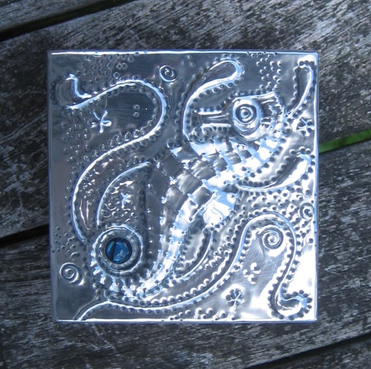 I love wildlife of all kinds. I used the images of shells, starfish and seahorses when I first started making from pewter as they seem to suit the material so well. I'm thrilled with the way this box has turned out (it's always a bit of a surprise to me!).....
