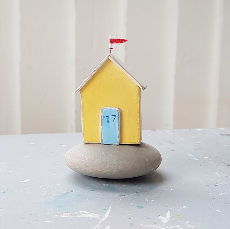 You can choose to personalise the yellow beach hut with a hand stamped 2 digit number of your choice. The other doors are decorated with a dark grey star and a tiny handpainted lifebuoy.
