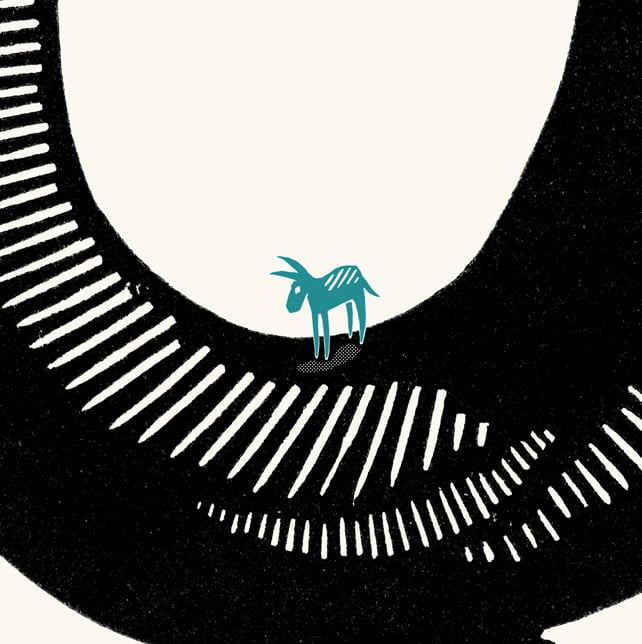 This is one of series of eight prints featuring donkeys exploring a sculptural landscape. I have created a lot of donkey-themed prints over the years, as I feel drawn towards their modest nature. I like to celebrate them and imagine them have all sorts of interesting times and adventures when not being watched or bothered by anyone.