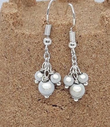 These shimmering drops are made using 4mm and 6mm silver grey beads with silver colour fittings and come in a pretty organza bag.
