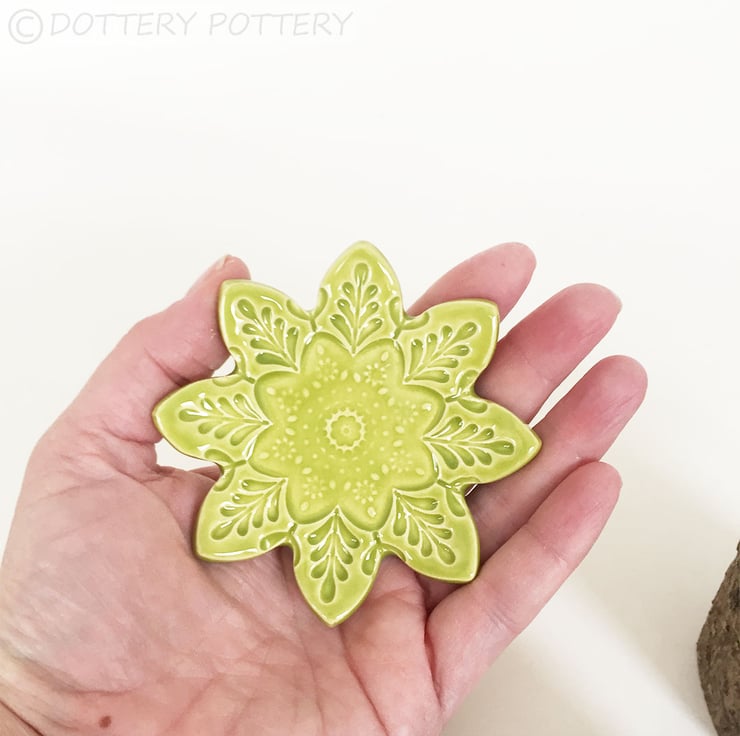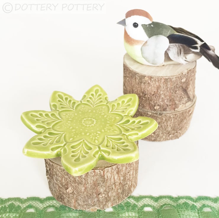 This listing is for a little flower shaped plate on feet. These little plates are glazed in bright, glossy glazes, perfect for a Summer tea party or special occasion. Hard wearing....they could be kept and used year after year. They are made from white earthenware clay and fired to a top temperature of 1100 degrees, so are nice and strong. Each plate measures 8.5cm across x 2cm deep. Finished in a food safe glaze. They could be used as a trinket or ring dish too. Was £6 now £4