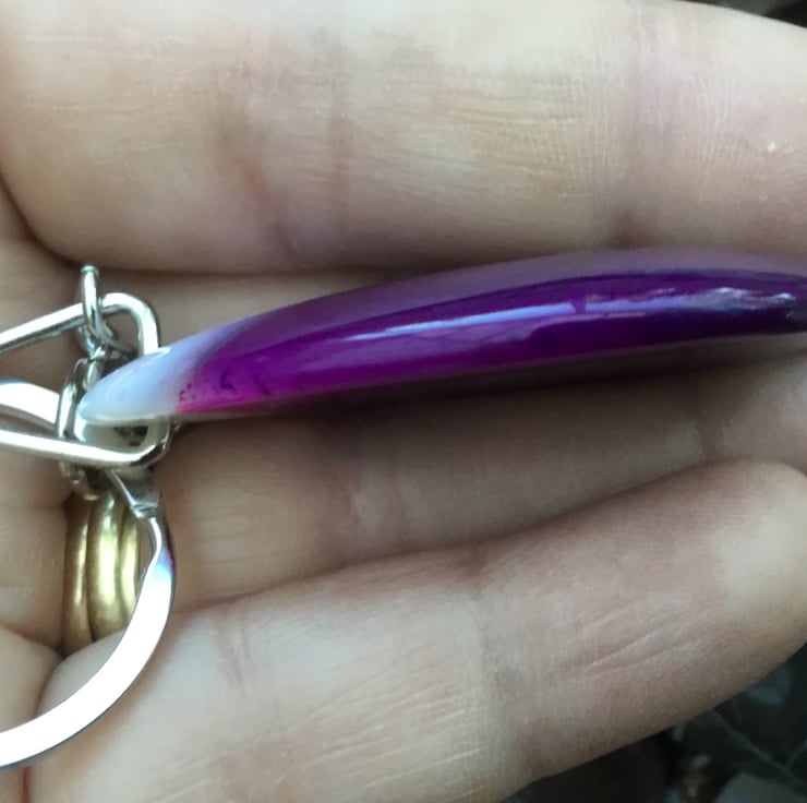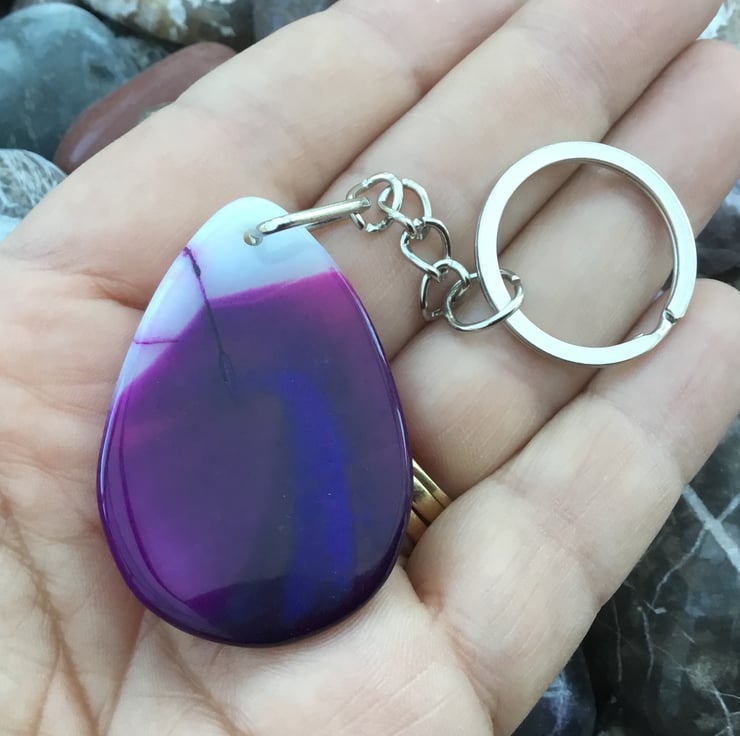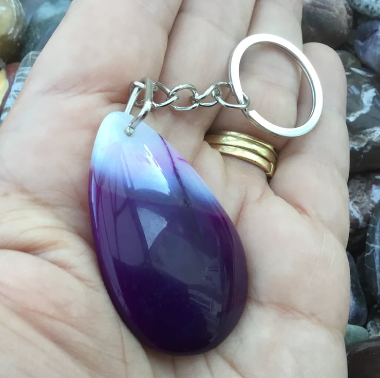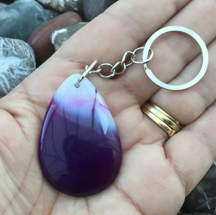 This stunning Agate pendant bead is something which should be on show so I thought it would make a fantastic keyring, or handbag charm for any lucky lady. If you wanted to buy a gift as a token of love, or friendship, then this would be ideal. Equally, ideal for anyone who just loves Agate and purple tones.