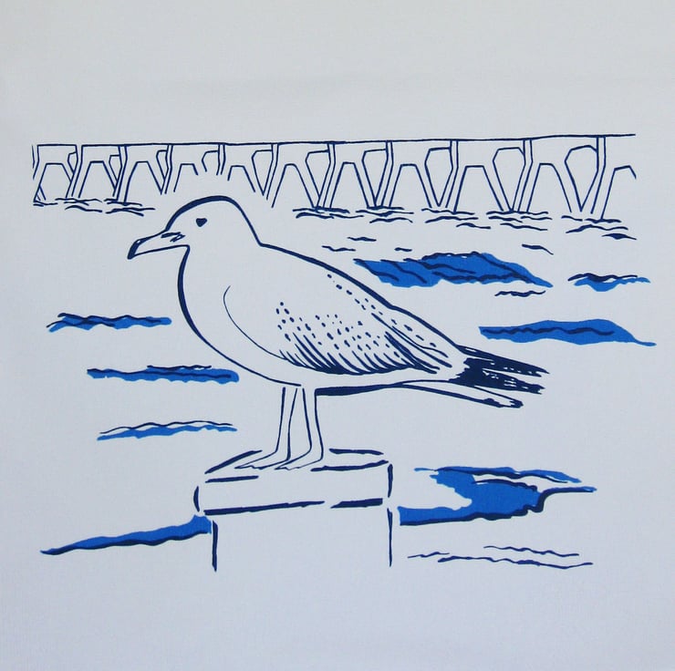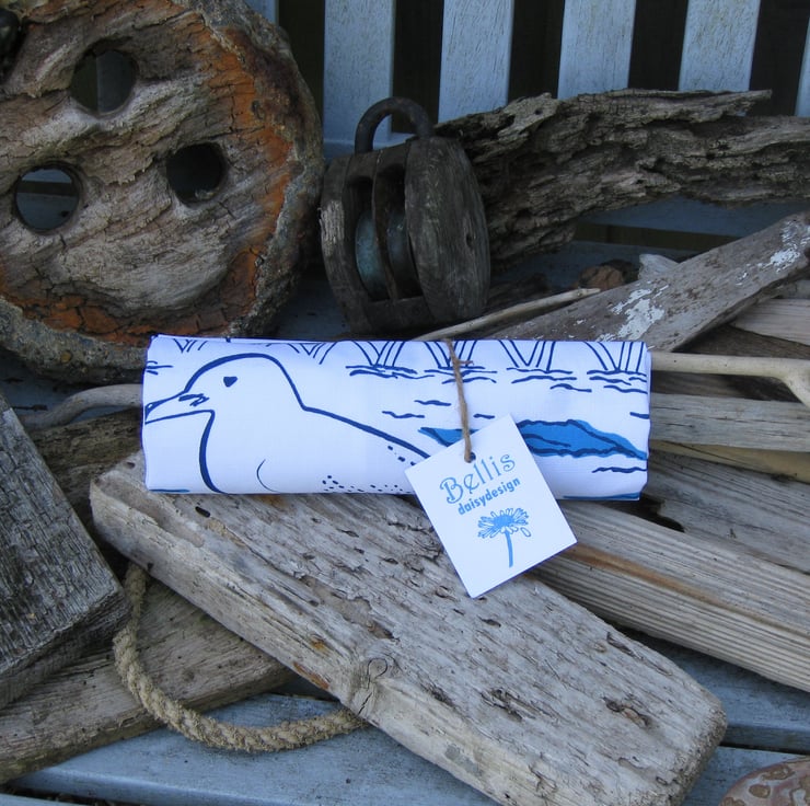 Designed and hand screen printed with hand mixed colours in coastal blues.