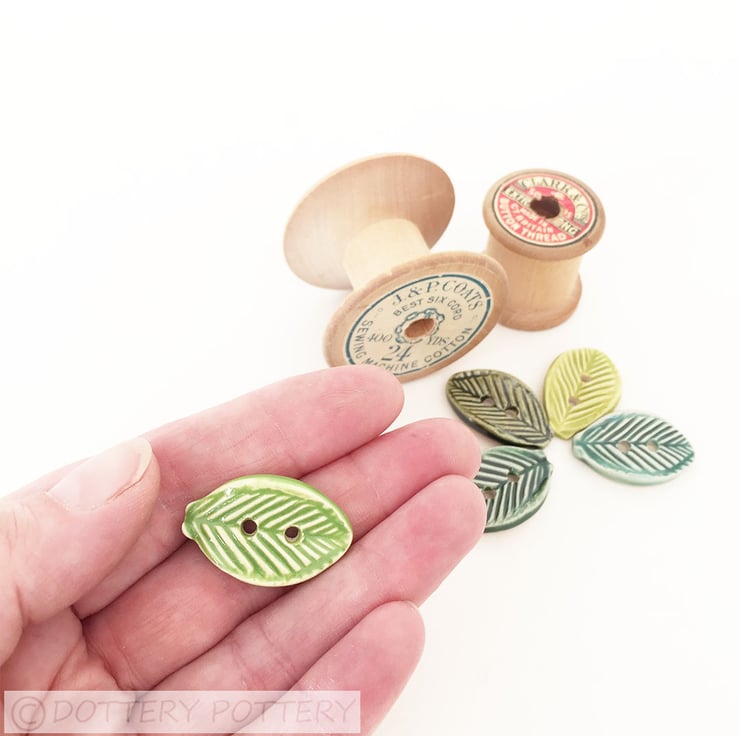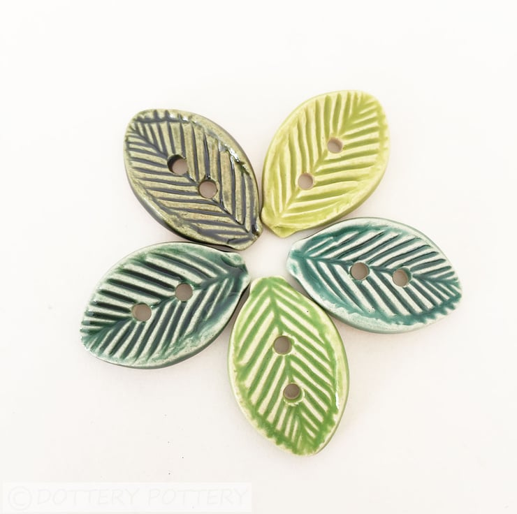 This set of five buttons are made from white earthenware clay, embossed and glazed to 1100 degrees, so nice and strong. Button size 28mm across x 20mm wide and 5mm deep They can be handwashed or machine washed on a low temperature Perfect for all sorts of arts and craft projects.