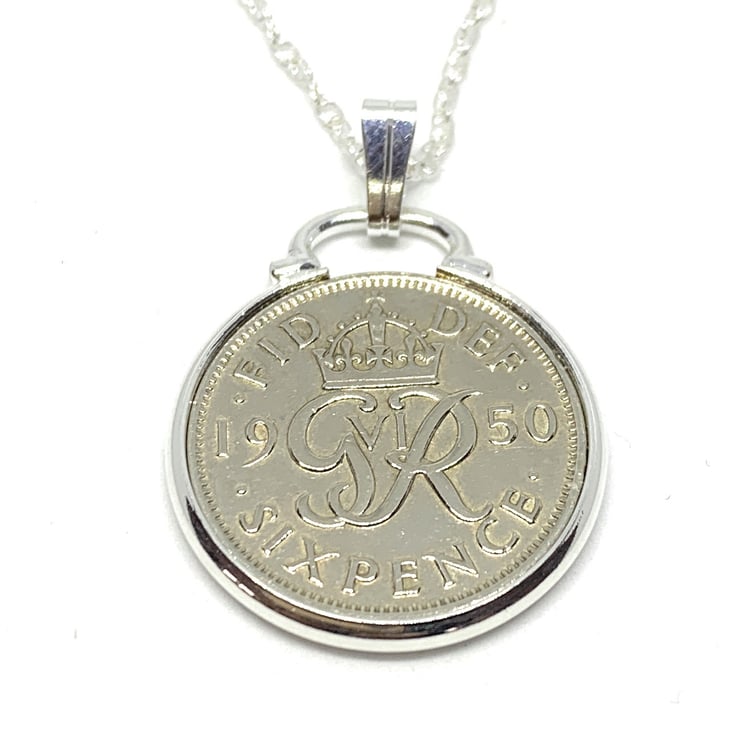 1950 Birthday Gift, 75th Lucky Sixpence Necklace, 75th Birthday Ideas, 75th