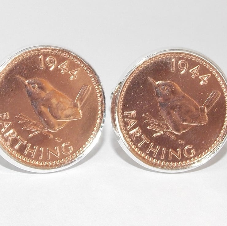 A Genuine pair of 1946 Circulated Farthing coins cleaned and polished then inset into silver plated cufflinks.