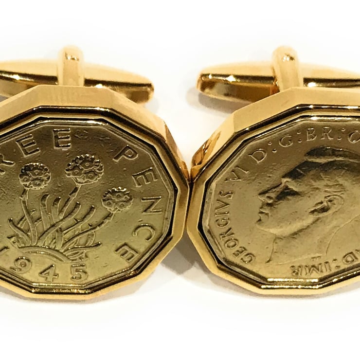 1945 Threepence 3d 80th birthday coin Cufflinks, 80th Anniversary gift