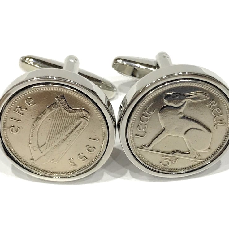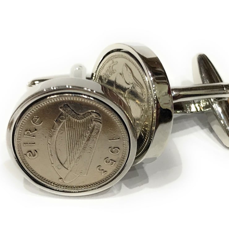 1953 Irish coin cufflinks- Great gift idea. Genuine Irish 3d threepence coin cuf