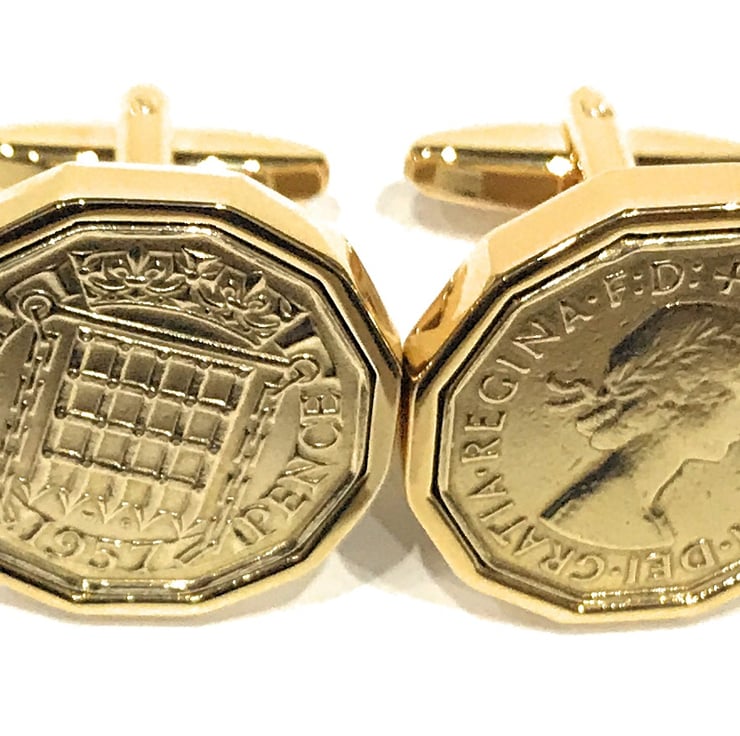 1957 Threepence 3d 67th birthday Cufflinks - Original 1957 threepence cufflinks