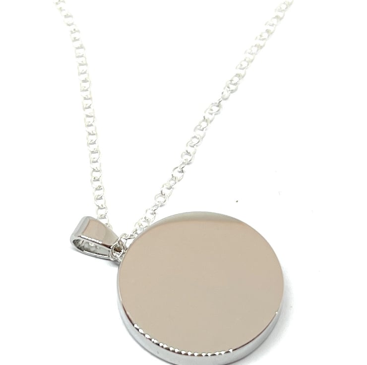 A genuine circulated 1945 hand polished Sixpence attached to a silver plated pendant mount creating a lovely two tone effect.