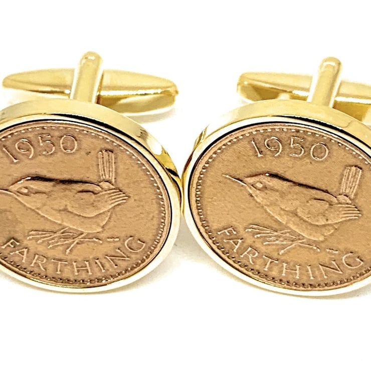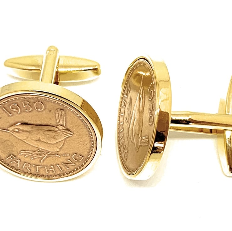 Genuine 1940 Circulated 81 year old Farthing cleaned and polished then inset in Gold Plated French cufflink backs creating a unique look and feel