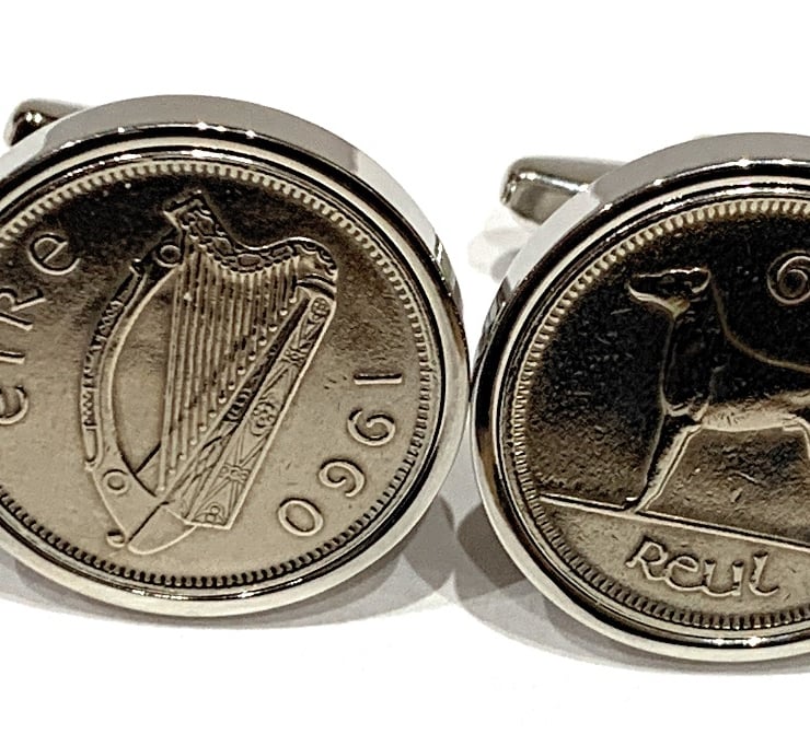 1960 Birthday Irish Coin Cufflinks 65th birthday cufflinks