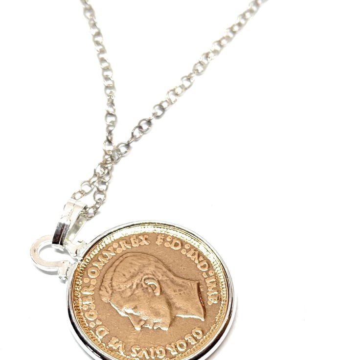 1944 80th Birthday Anniversary Farthing coin in a Silver Plated Pendant mount