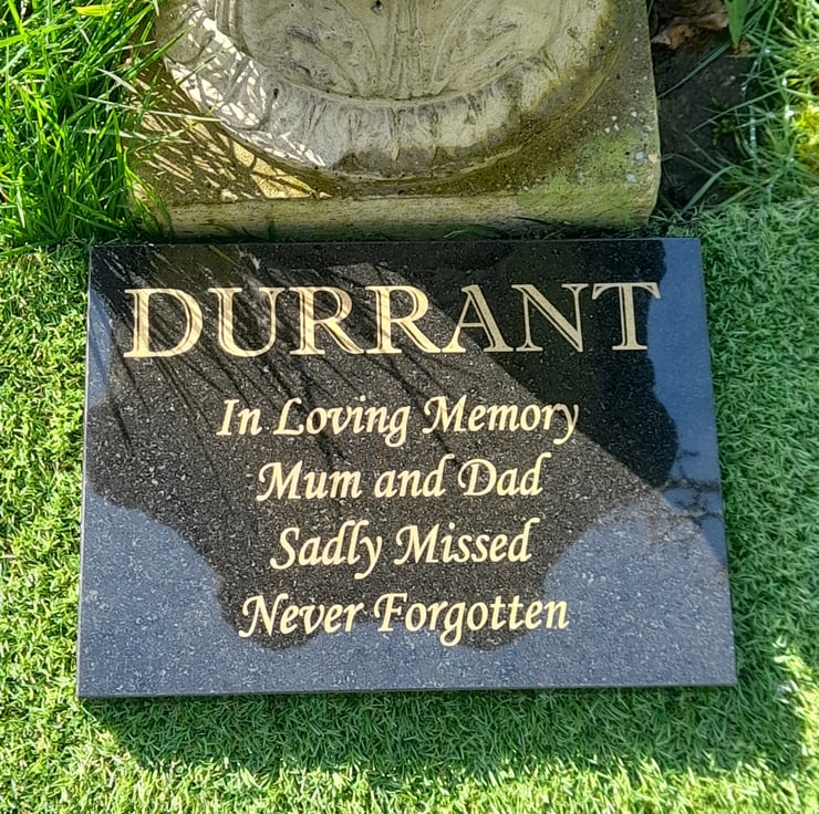 Precisely Laser Etched Directly into the Granite using our state of the art technology, for a fully weatherproof and high quality finish.