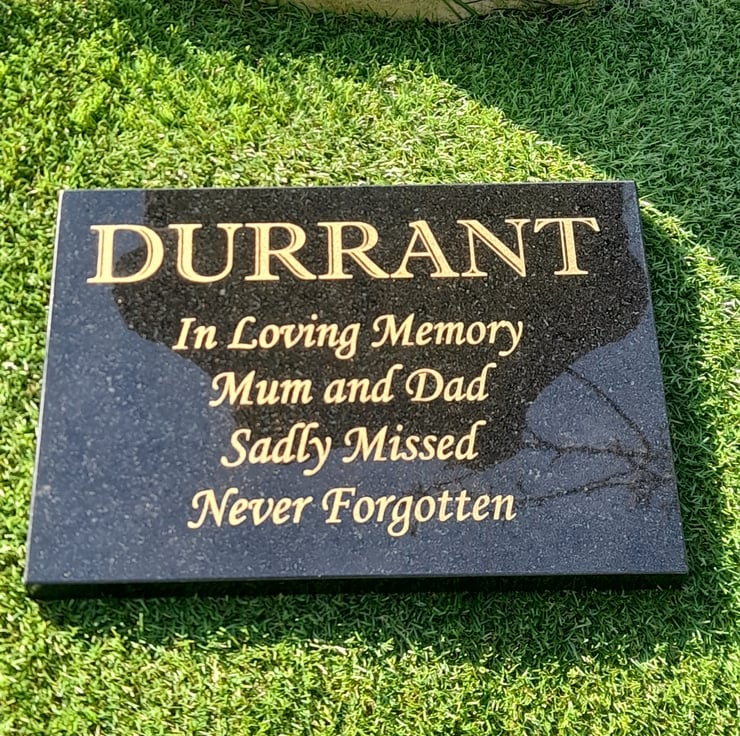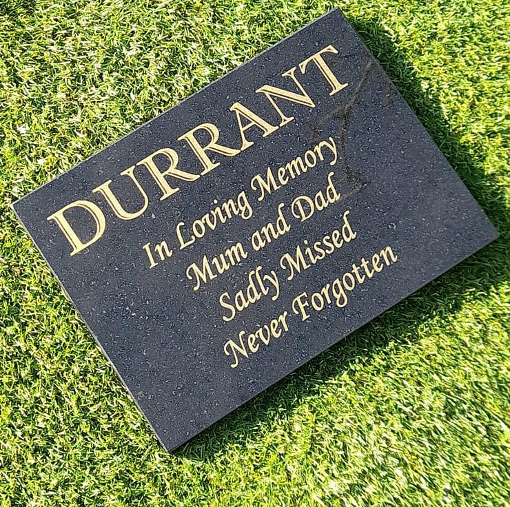 Precisely Laser Etched Directly into the Granite using our state of the art technology, for a fully weatherproof and high quality finish.