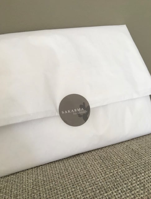 Gift wrapped as standard in white tissue with SAKARMAhandmade sticker.