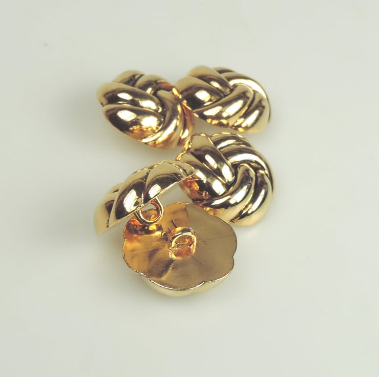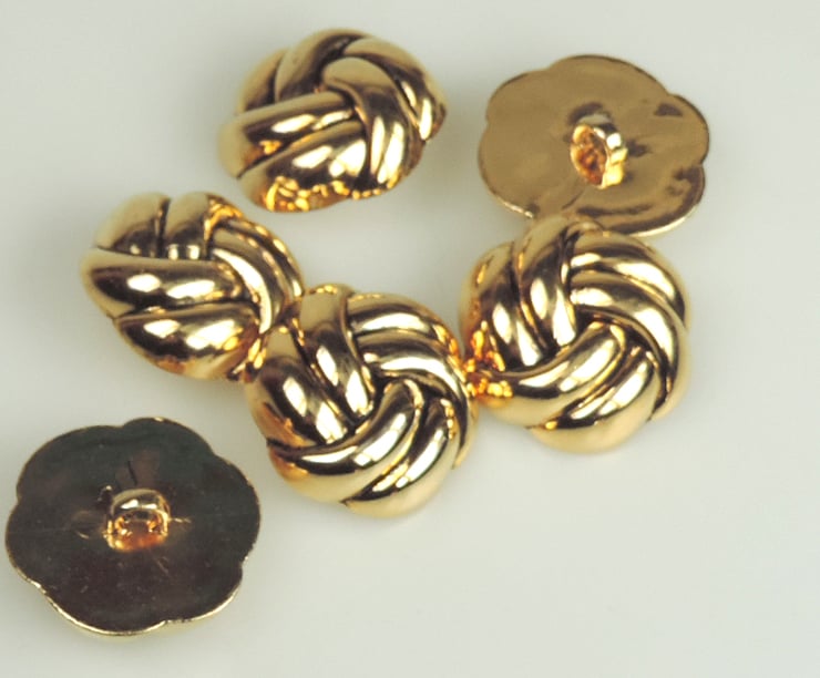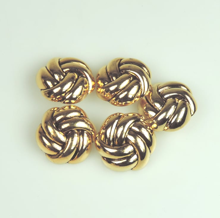 Set of 5 Knot buttons, plastic buttons to look like metal, gold colour.
