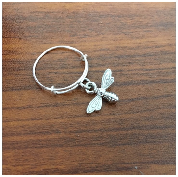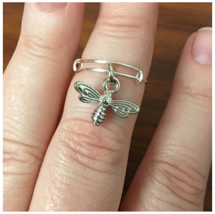 Adjustable ring featuring a sweet little bee charm.