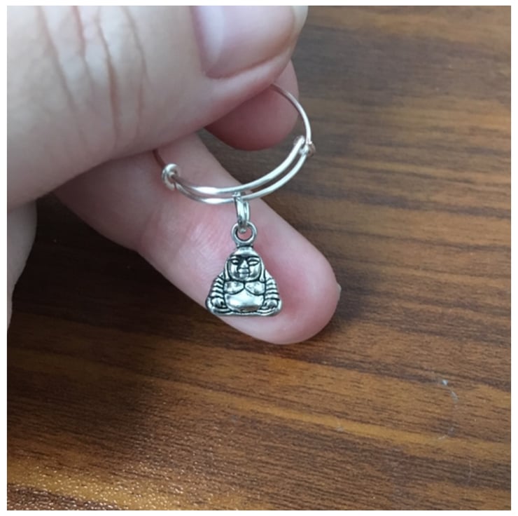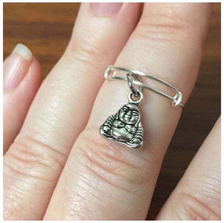 Adjustable ring featuring a sweet little buddha charm.