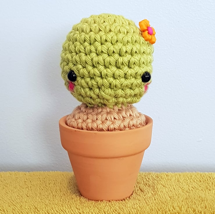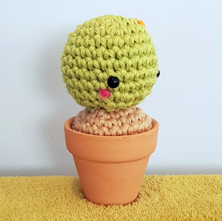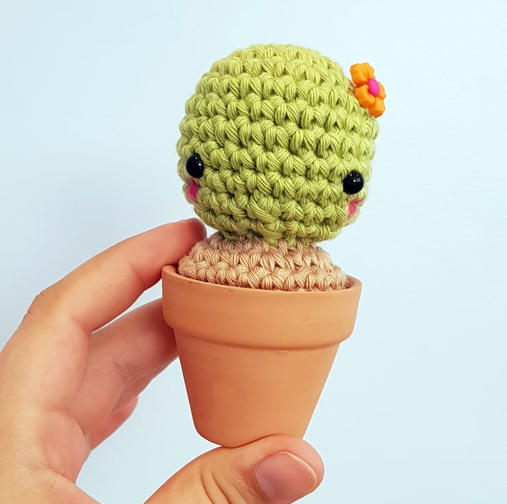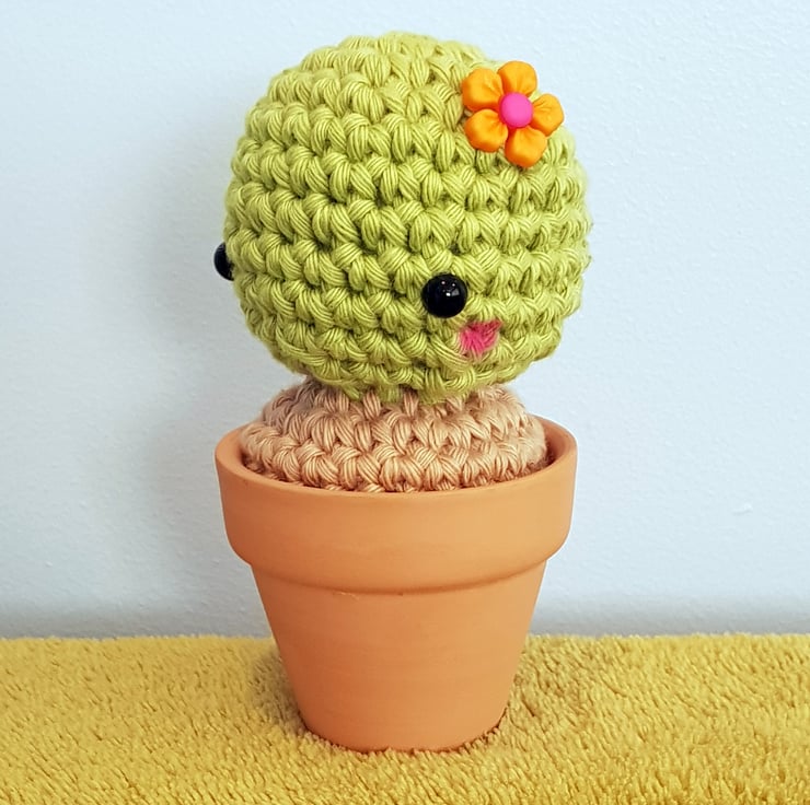 Tilly is handmade in cotton yarn, sat in a little terracotta pot. She is the perfect houseplant - no feeding, no watering, and most importantly no prickles! She is soft, squishy and super friendly. Tilly would love a little desk or windowsill to sit on and keep you company.