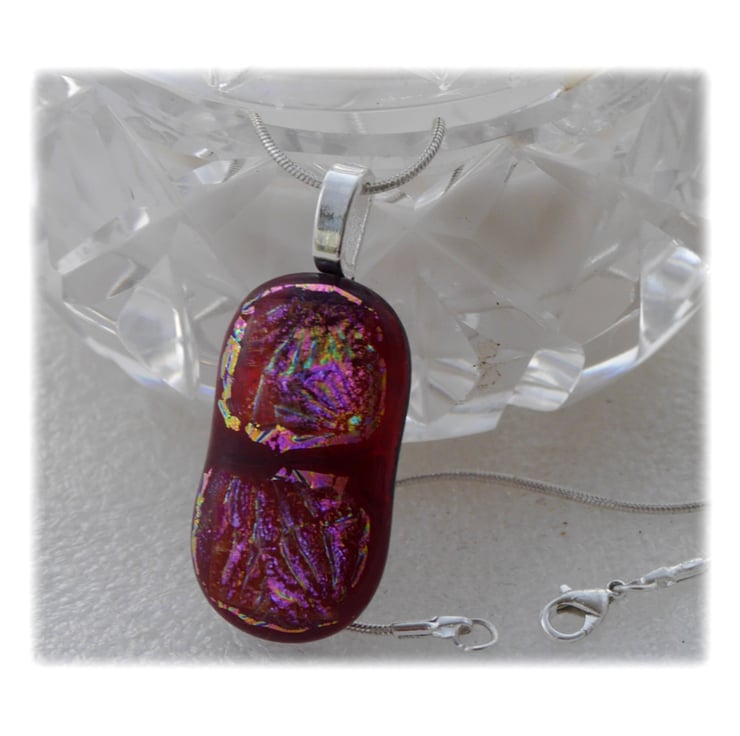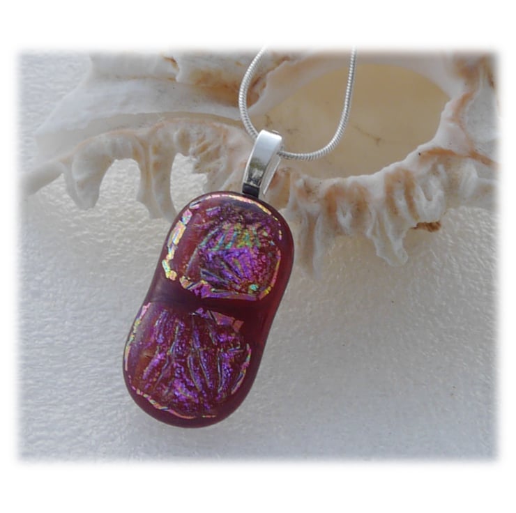 Plum Dichroic Glass Pendant 130 Glitter with silver plated chain