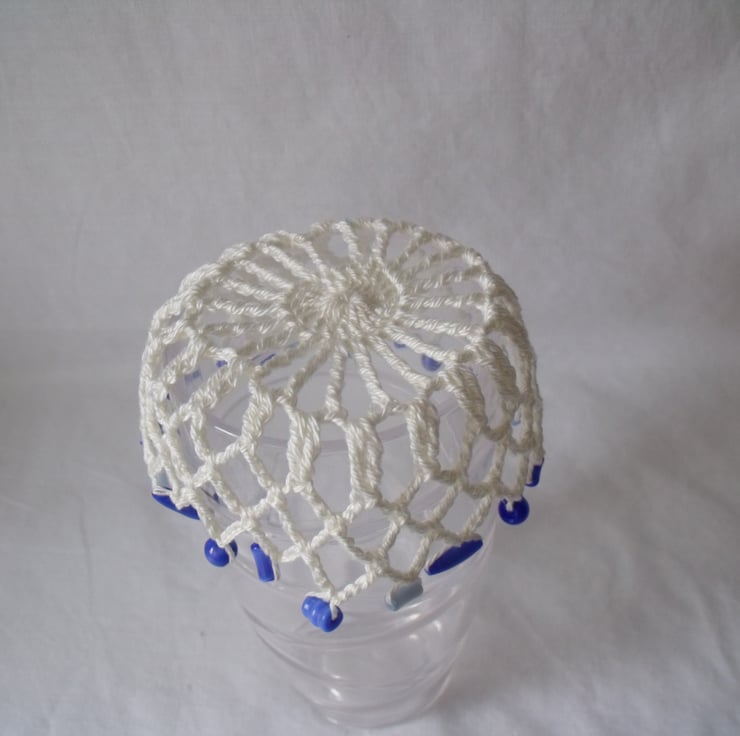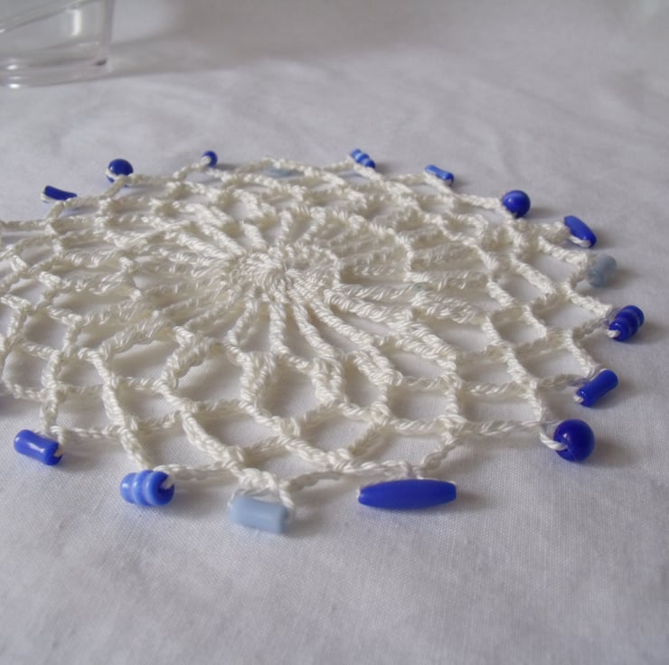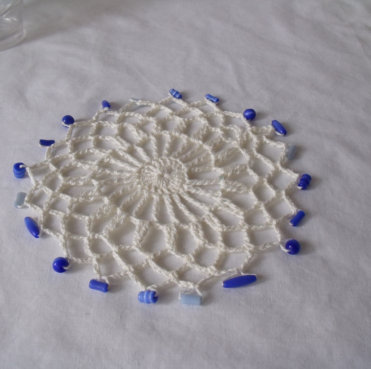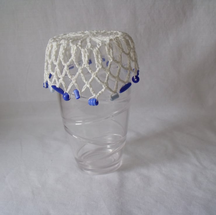 A useful crocheted beaded doily to keep those bugs out of your drink whilst drinking outdoors.