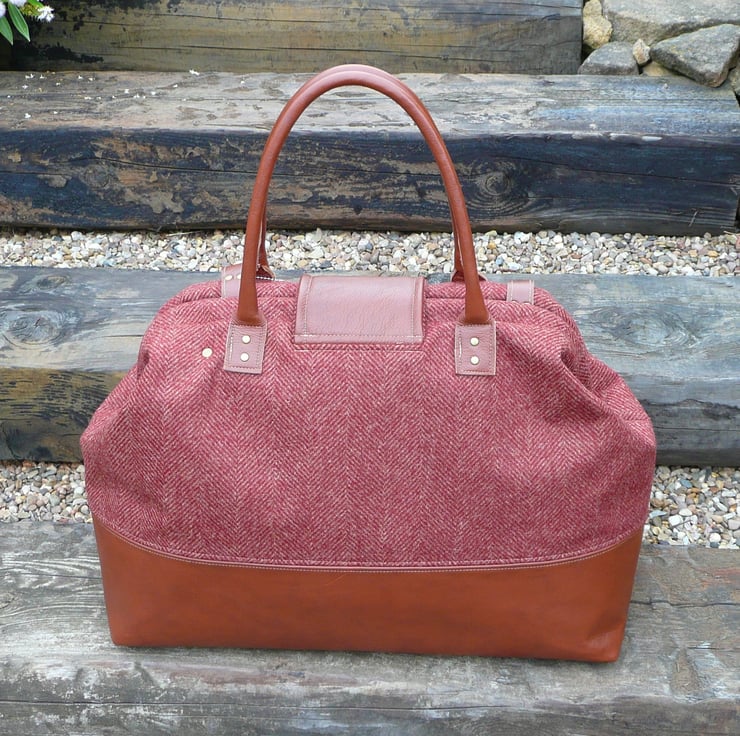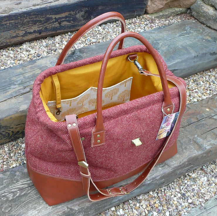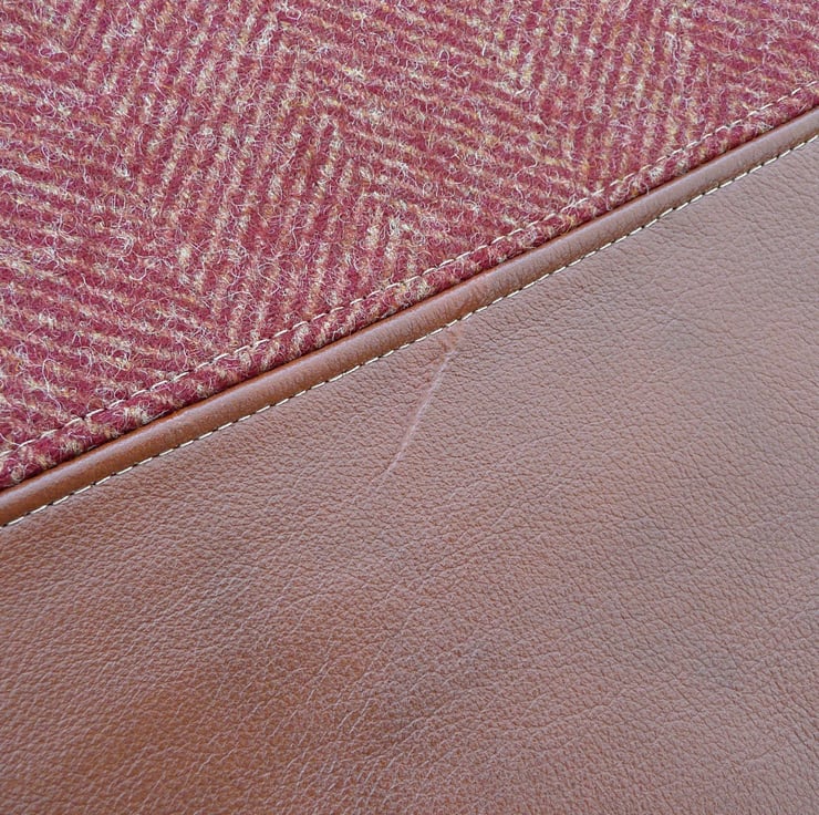 Quality upholstery fabrics can be used for bags as well as chairs and cushions, this bag is made from quality upholstery grade tweed and leather.