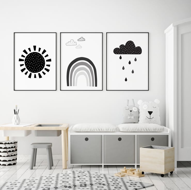 This Set of 3 Scandi Nursery Wall Art Prints are part of our Monochrome Scandi Nursery Collection.