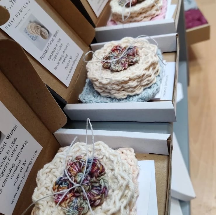 Each set of my reusable facial wipes comprises of 1 square wipe (approximately 9cm) and 4 round wipes (7cm diameter). More colours to follow.