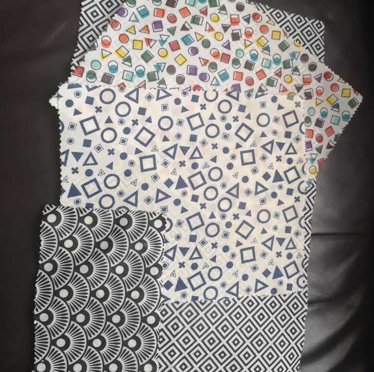 A set of 8 resusable beeswax wraps, ideal for replacing cling film or tin foil as a food covering.