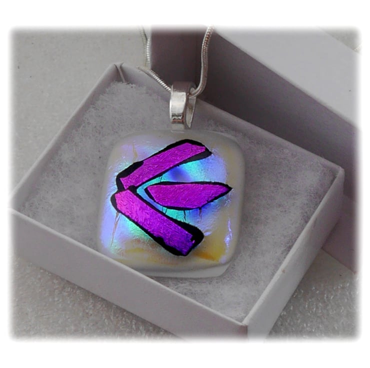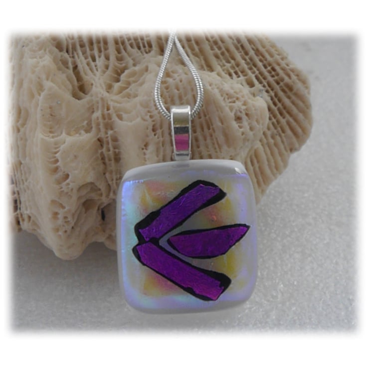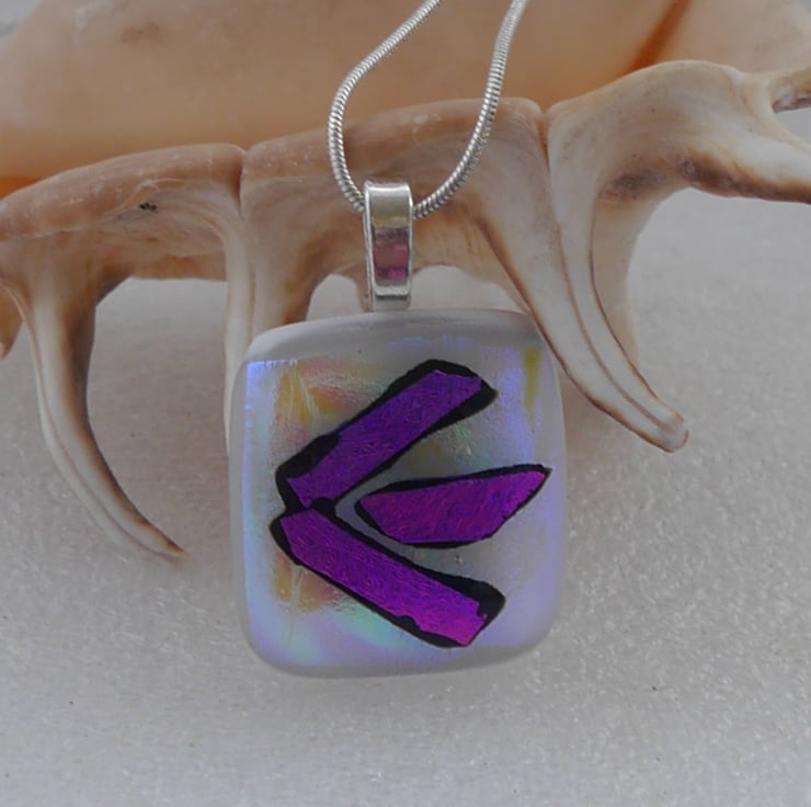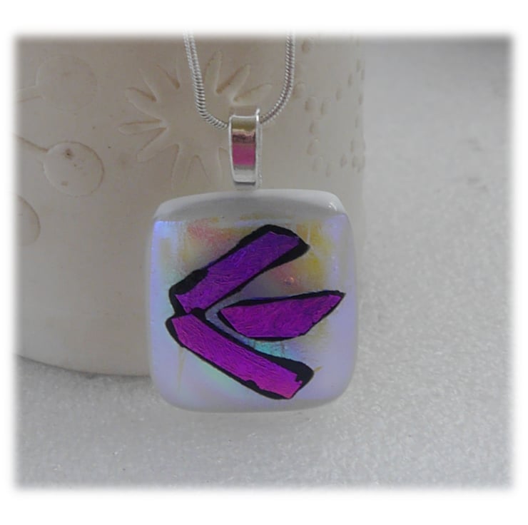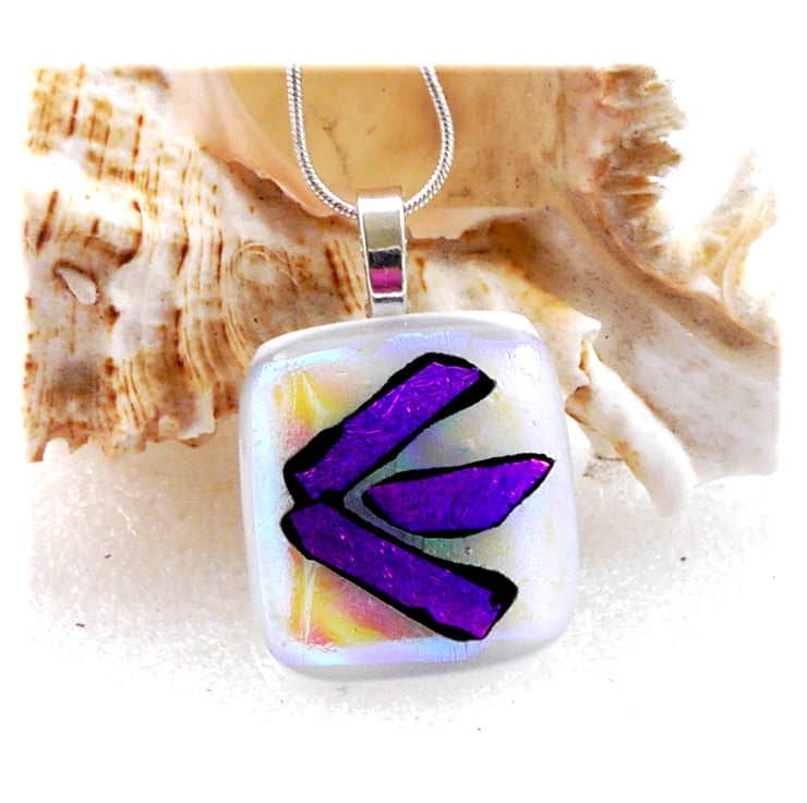 White Dichroic Glass Pendant 139 Purple Shine with silver plated chain