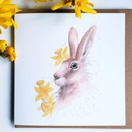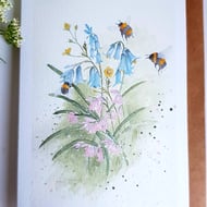 Forget me not card, originally painted with watercolour this beautiful image is then printed on 100% recycled white card and comes with a recycled natural brown envelope.