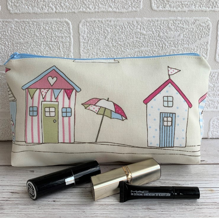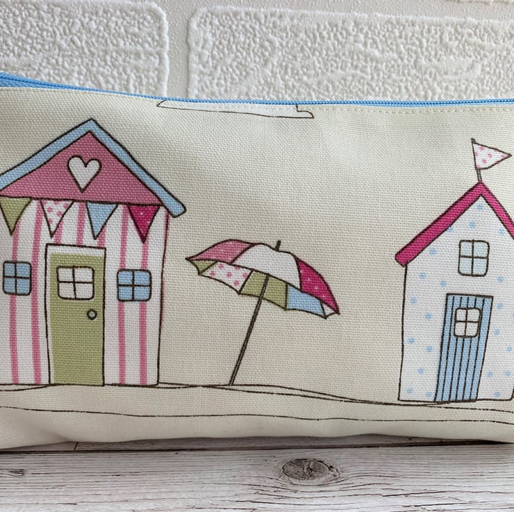 A handy make up bag which can be used to store your make up and could also be used as a pencil case. The bag, with its beach theme and pastel colours would make a lovely gift, particularly for anyone who loves beach huts.