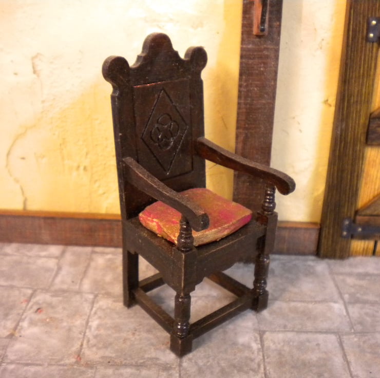Tudor Style Doll House Chair with a Polymer Clay Cushion