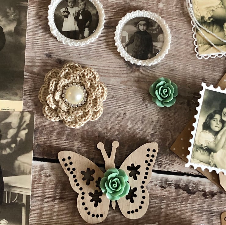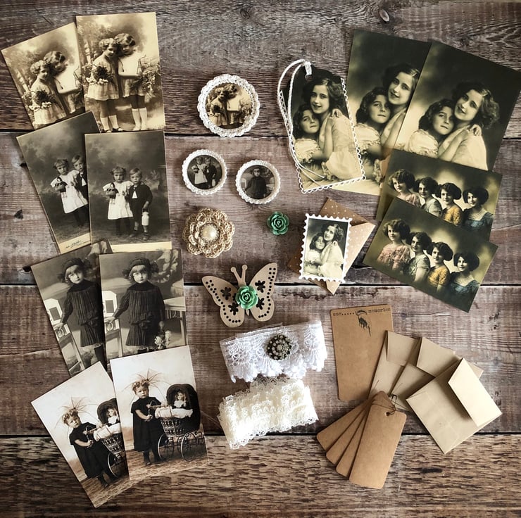 Vintage style inspiration kit to help you create a special project .. card making, journals, mini albums .. even create a nice shadow box frame collage.