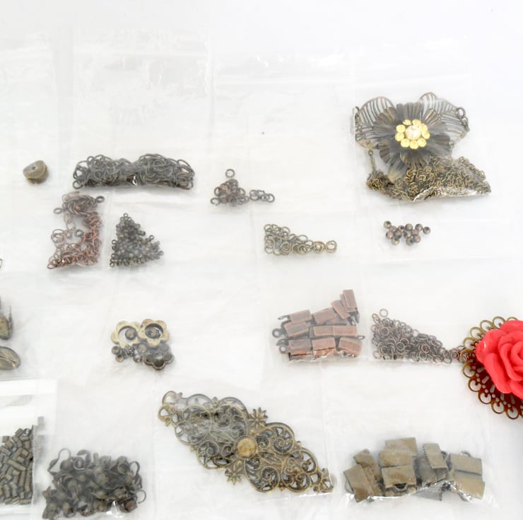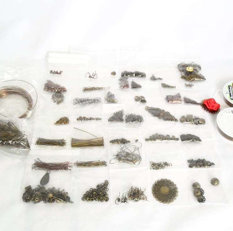 As I no longer make jewellery to sell I am selling off my remaining stock of findings. This listing is for a bundle of bronze-plated (and a few copper coloured) jewellery findings. They are just part packs and reels with some single items.