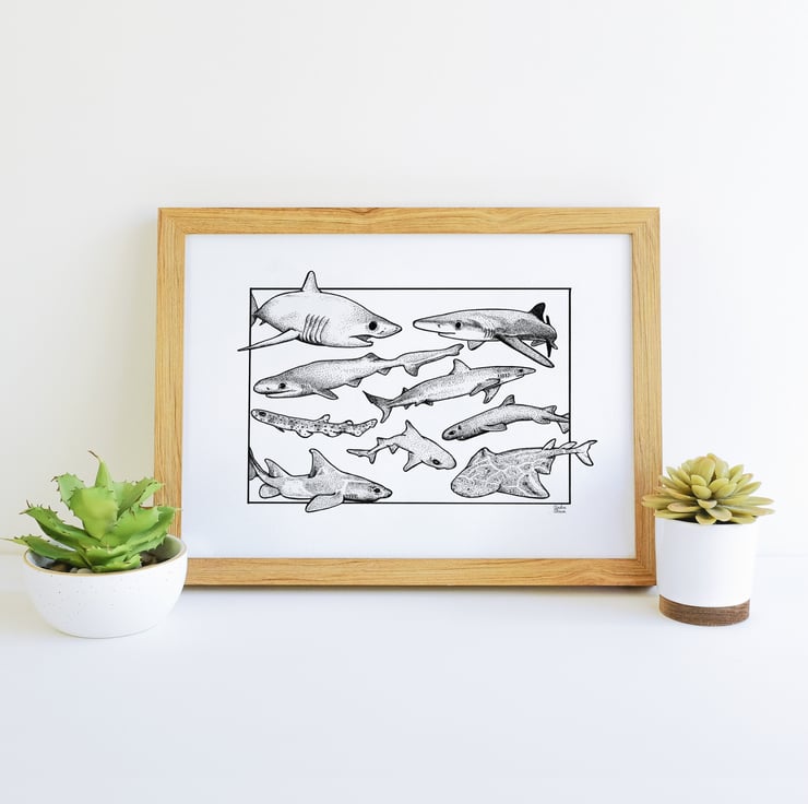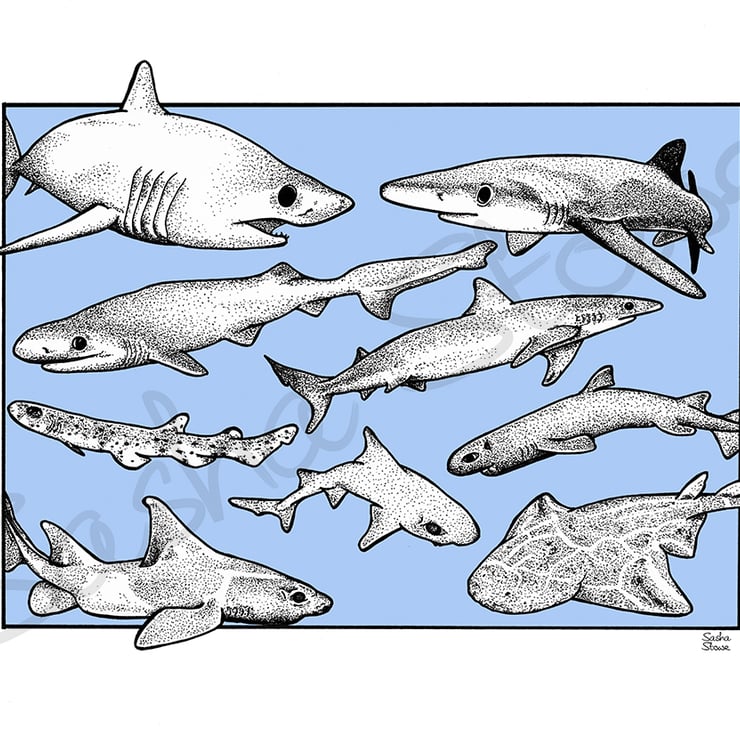 Sharks of Britain British Atlantic Shark Illustration Art Print