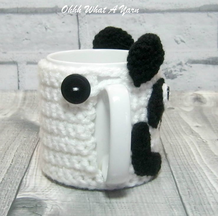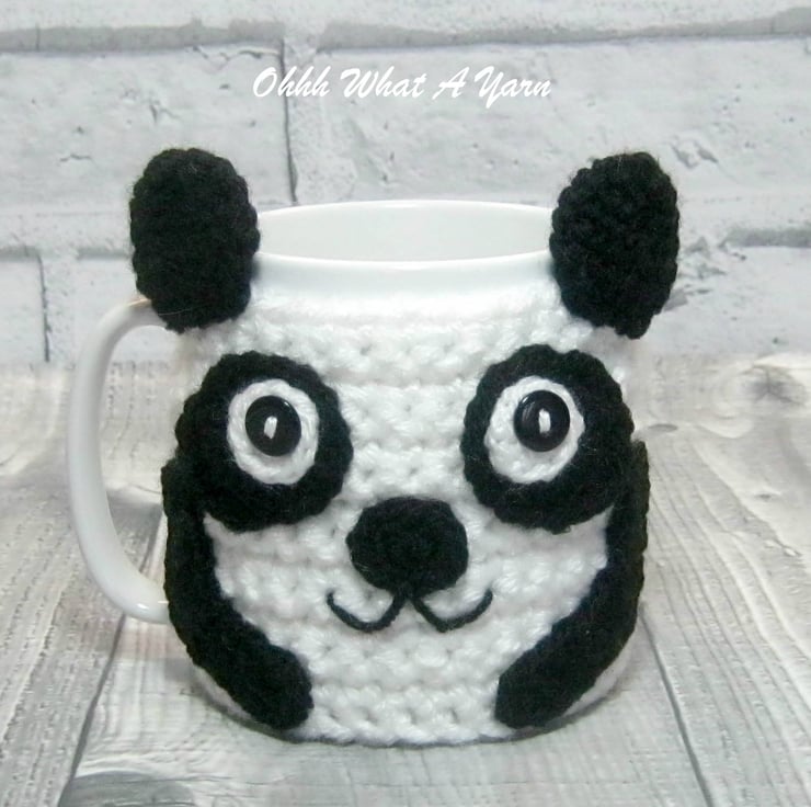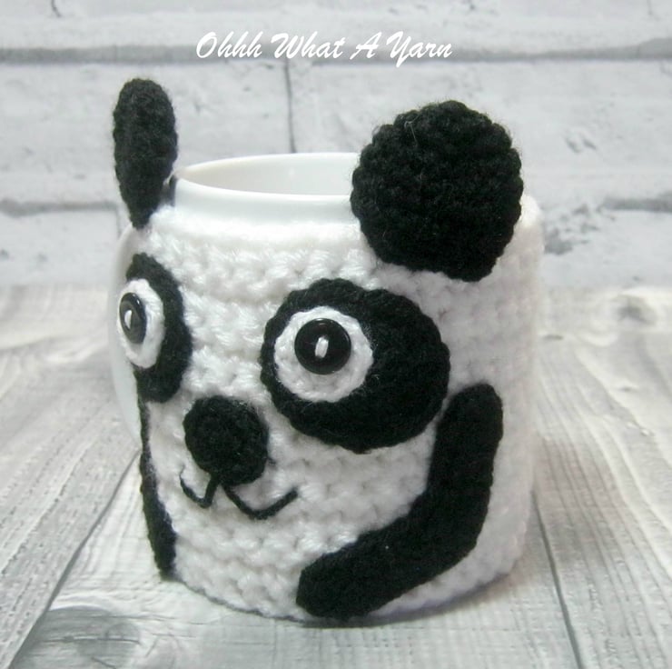 This cute panda mug hug is crocheted in 100% acrylic yarn.