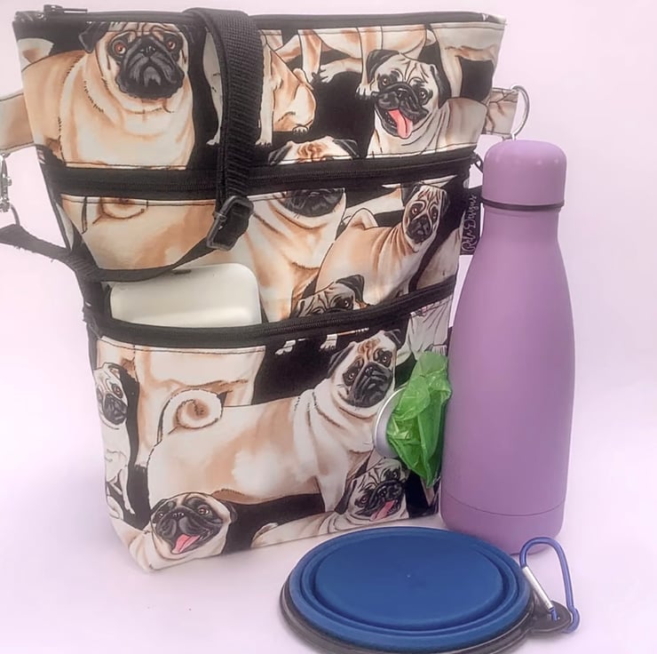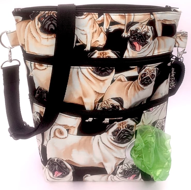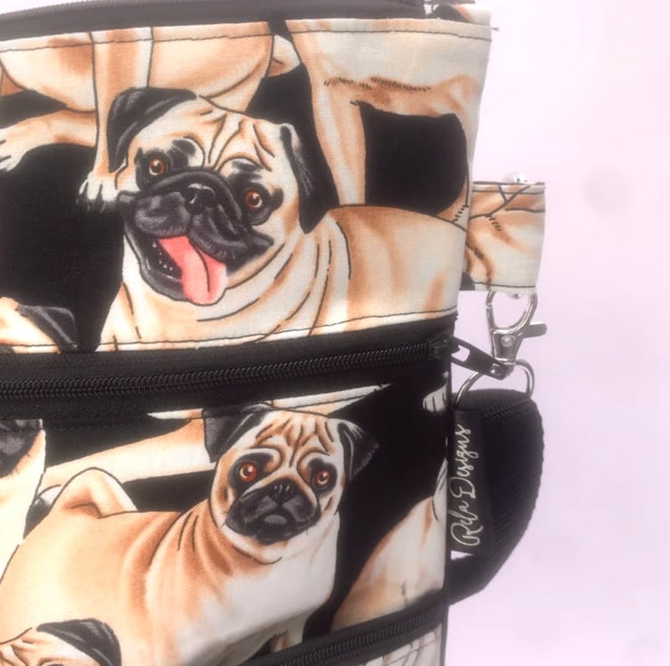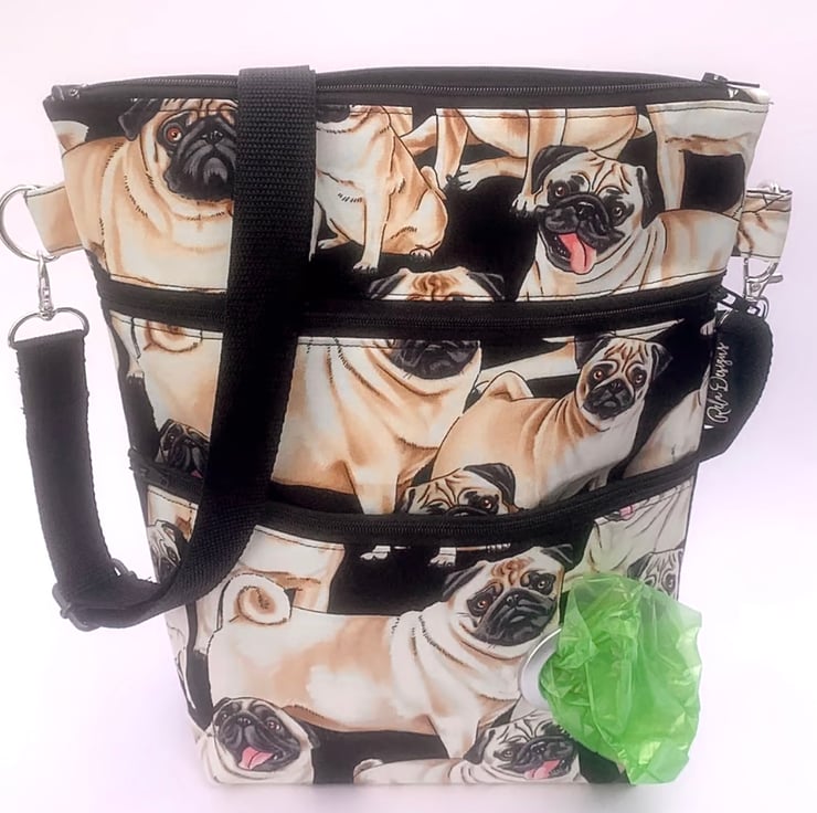 Dog walking bag, crossbody bag, pugs