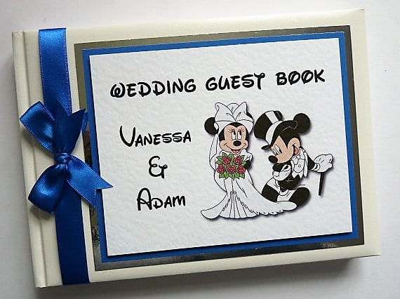 This Wedding Guest Book is decorated with embellishments and a ribbon.