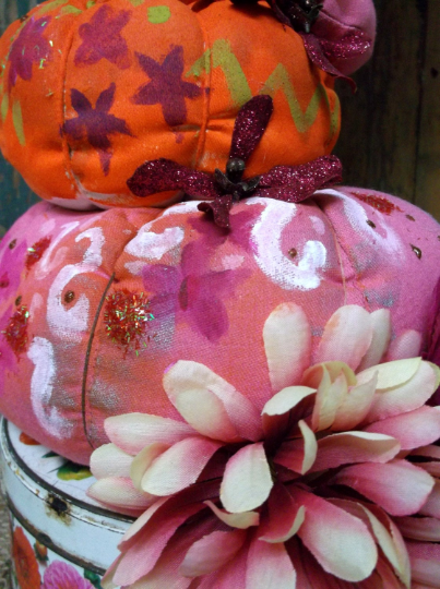 all hand painted, glittery, with flowers, glittery flowers, pom poms, on top of a vintage tin.