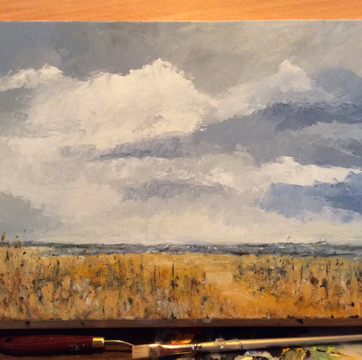 Size of canvas approx. 45 x 30 cm. There are D rings on back so ready for hanging but these can easily be removed if needed.